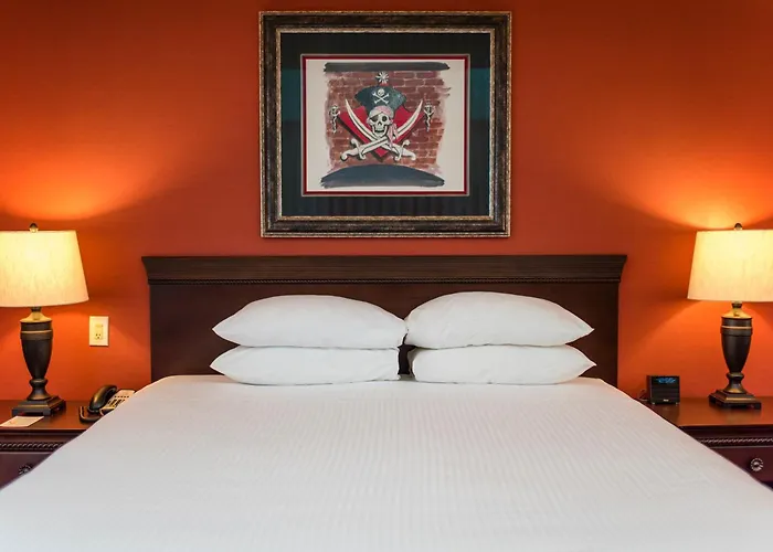 The property offers a range of entertainment and family-friendly activities for guests to enjoy. Kids, both young and old, can have a blast splashing around at Castaway Cove, a watery pirate playground with slides, water cannons, and a pirate ship. For those looking for a bit of adventure, the property's convenient location provides easy access to the nearby cruise ship ports and terminals, offering opportunities for exciting excursions and trips to Catalina Island. Additionally, guests can take advantage of the fun opportunity to collect autographs from beloved Disney Characters, making their stay even more memorable. And for added convenience, guests can leave their vehicles in the parking lot until noon on their departure day.. Conveniently located just a 5-10 minute walk from Disneyland, the Howard Johnson By Wyndham Anaheim Hotel & Water Playground is an ideal choice for families looking to enjoy the park without sacrificing convenience. Guests can also explore other nearby attractions such as Adventureland, Guardians of the Galaxy: Mission Breakout, and Downtown Disney shopping. For transportation options, the property is situated 800 meters from the Disneyland Monorail, providing easy access to different areas of the park. Additionally, John Wayne Airport is approximately 25 kilometers away, offering convenient travel options for guests flying into or out of the area. With its prime location and proximity to major attractions, the Howard Johnson By Wyndham Anaheim Hotel & Water Playground allows guests to make the most of their time in Anaheim.
